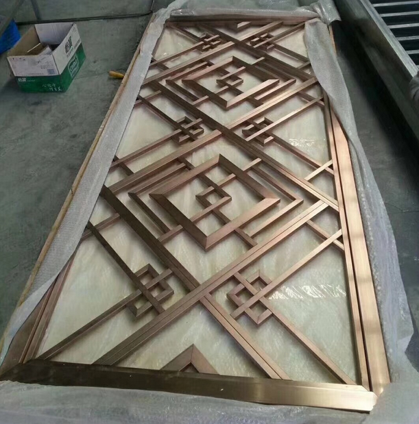 不锈钢屏风镀上玫瑰金等颜色的效果会比不镀色要更好,对屏风的表面进行着色处理,增加屏风自身的使用美观。不锈钢屏风经常使用201或者304这两种不锈钢材质进行加工制作,使用304这种材料比较多。因为304的耐腐性以及防锈性等多方面的条件都比较好。