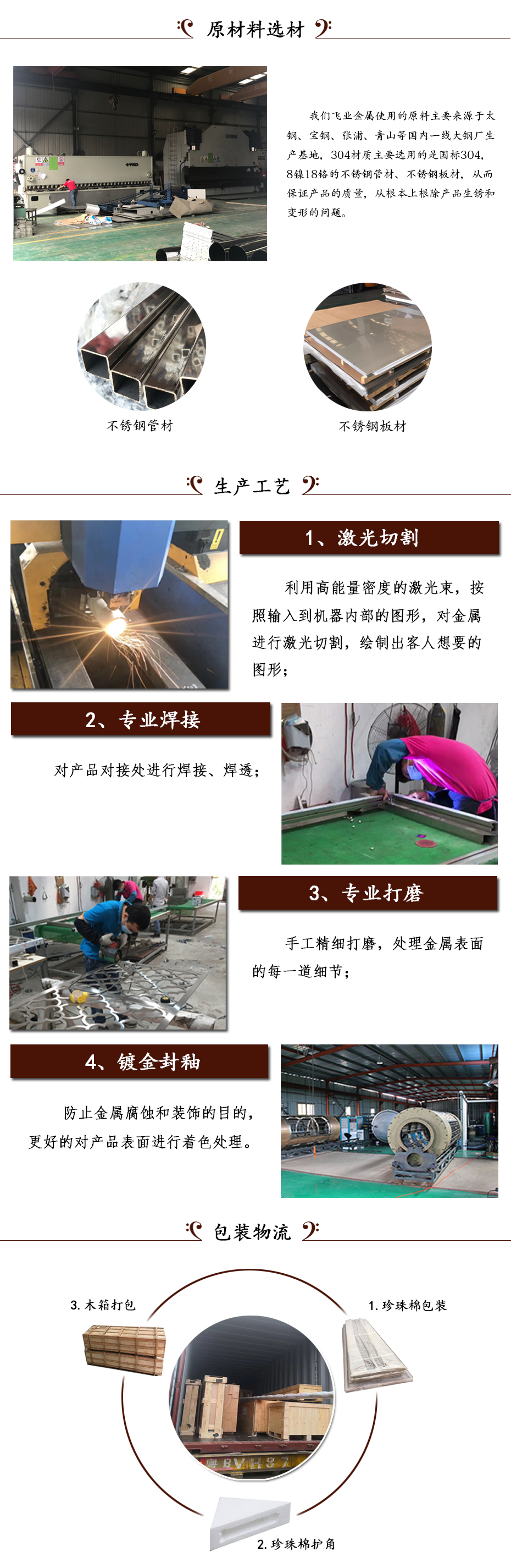 °ÑÇиî³öÀ´µÄ²»Ðâ¸ÖͼÐÎ/ͼ°¸º¸½Óµ½×öºÃµÄ²»Ðâ¸ÖÍâ¿òÉϽøÐбíÃæ´¦Àí£¬±íÃæ´¦ÀíÓÐÀË¿ºÍ¾µ¹â£¬À˿ֻÐèÒªÈ˹¤´òÄ¥¾Í¿ÉÒÔÍê³ÉÁË£¬¹¤ÒÕÏà¶Ô±È½Ï¼òµ¥£¬µ«¾µ¹â¾ÍÐèÒª´òÄ¥ºó½øÐÐÅ׹⴦ÀíÁË£¬¹¤ÒÕÏà¶Ô¸´ÔÓ£¬Ö÷ÒªÊǸù¾ÝÏÖ³¡µÄ·ç¸ñºÍЧ¹û¶ø¶¨¡£